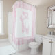Your young dancer will love this pink and white ballet shower curtain featuring ballet typography inside a pointe shoe, along with pink watercolor stripes. Surprise your little one - order yours now!