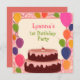 Celebrate your little one’s big day with this pink 1st birthday party invitation! Featuring colourful balloons, a chocolate cake illustration, and space for all your party details, this card is perfect for a sweet and memorable celebration. Ideal for baby girls’ first birthdays, this charming design makes inviting friends and family easy and fun.