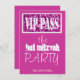 Pink sparkly VIP Pass Bat Mitzvah Bar Mitzvah party invitation a modern and stylish design at zazzle.com/DatesDuJour.