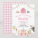 Pink Barn Farm Animals Barnyard Girl 2nd Birthday Invitation