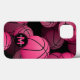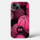 This custom girls' basketball iPhone case features a pattern of bright pink basketballs that vary in size and fade into a black background, giving the pattern a 3D appearance - customize with her name and monogram - by katz_d_zynes | see more girls' basketball gifts >>> https://www.zazzle.com/collections/119219336971589589