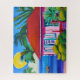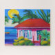 Pink Beach house Tropical Art Jigsaw Puzzle