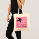 Pink Custom Monogram Travel Wedding Tote Bags for the Caribbean. with palm tree artwork. Customize with your names, date, monogram and destination. A great welcome gift for your guests. Fill with beach things and wedding information.