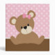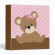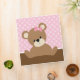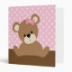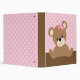 Custom baby photo binder features a cute vector illustration of a brown bear sitting on a brown and pink polka dot pattern background. © Cocoa Studio