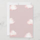 Welcome a little one with this sweet and elegant Heaven Sent baby shower invitation, featuring a soft bear in a hot air balloon basket, pink watercolor clouds, and delicate pastel tones. This design is perfect for a baby girl shower or a gentle pink-themed celebration.