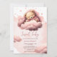 Pink bear on clouds baby birthday invitation