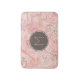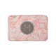 This elegant bath mat has a soft pink, beige and grey marbled watercolor background and is customized with your monogram initial.