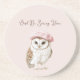 Pink Beret Brown White Owl Be Seeing You Coaster