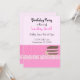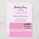 A fun design in shades of pink, animal print along the bottom and a piece of cake in chocolate and pink.