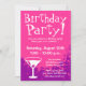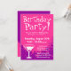 Pink Birthday party invitations | Custom invites. Personalizable announcement text and background colour. Cocktail glass design with hot pink colours.