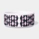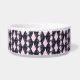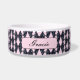 Elegant Pink and Black Bow Dog Bowl easily add your pet's name in cursive script font. Trendy coquette black bow pattern on light pink background.