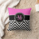 Pink Black Chevron Monogram Elegant Throw Pillow