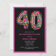 Pink Black Colourful Women 40th Birthday Party Invitation