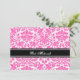 Custom Bat Mitzvah party invitations in elegant bright fuchsia hot pink, black and white classic floral damask pattern. Add your name and party details for a unique and stylish Bat Mitzvah party invitation.