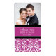 Elegant Wedding thank you custom photo template labels in stylish fuchsia hot pink, black and white with classic and romantic floral vintage damask pattern, the perfect addition to your wedding, available in a wide selection of matching wedding products. Perfect for wedding favours or wedding wine bottle labels.