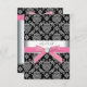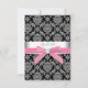 Pink black damask RSVP cards. Add your details to the front and back by simply choosing the orange "Customize it!" button to begin adding your event details, font style, font size & colour, and wording. Please note - all of the invitation designs you will find on Zazzle are printed graphics on flat paper stock with no actual jewels, bows, raised, embossed, or added parts or pieces.
