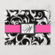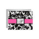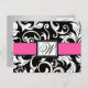 Hot Pink & Black Damask Monogram Wedding RSVP Cards - For Buffet Style Receptions