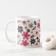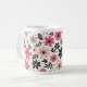 A stylish white mug featuring a delicate pink and black floral design. Perfect for enjoying your favorite hot drinks while adding elegance to your kitchen or office. Durable, modern, and makes a thoughtful gift for friends and family.