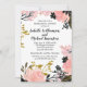 Chic and luxe style. Large blush pink roses set the tone of this rehearsal dinner invitation. Small black flowers, leaves and berries add drama. Gold accent leaves give it a luxe vibe. The wedding couple names are written in a hip and trending script font. The remainder of the text is in a classic serif font. Very easy to customize.