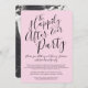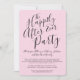Typographic script modern simple pink with black text. The happily ever after party post wedding invitation. Simple modern contemporary design, personalize with your own wedding after-party belated wedding venue, brides and grooms names and reply details on the front and your favourite wedding photo from your wedding day on the reverse. Matching wedding products and other colour options available in the store. © Design by Sarah Trett for www.mylittleedenweddings.com