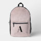 Pink & black leather look monogram printed backpack