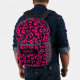 Introducing a chic and trendy backpack adorned with a vibrant hot pink and bold black leopard print. This eye-catching accessory not only makes a fashion statement but also offers the unique option to personalize it with your name, ensuring that it reflects your individual style while keeping your essentials organized and accessible. Perfect for school, work, or outings, this stylish backpack combines functionality with a playful flair.