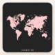 Pink & Black Map Square Paper Coaster