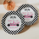 Pink Black Race Car Ready Set Go Baby Shower Paper Plate