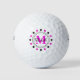 This golf ball for her features her monogram in bright pink within a circle framed with black dots and double black lines. On the outside of the black frame is a circle of alternating pink and black stars. Her name is written in black over the pink centre monogram. Very special and classy!