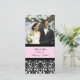 Wedding thank you photo cards in elegant and modern light pink, black and white with delicate floral damask pattern. A perfect way to thank friends and family for wedding gifts and to share your wedding photos. Available in matching postage, and many other products for your wedding.