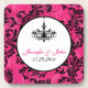 This personalized, modern and trendy hot pink, black and white ballroom chandelier wedding favour coaster set of 6 has a background pattern of pink and black ornate scrolls on it that would be ideal way to thank your wedding guests, or give as a keepsake to the Newlyweds or wedding party attendants. Break up the set of six into pairs of two, drop them into an organza bag, tie off with a ribbon and favour tag, and you'll have a useful favour to hand out. The text is customizable. If you require any other matching items, please email your request to niteowlstudio@gmail.com.