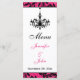 This hot pink, black and white chandelier wedding menu card has a pink and black ornate flourish and scrolls pattern border that matches the wedding invitation shown below. It has a high gloss front and a matte finish back. If you would like a menu on paper to match your invitations, or on a greeting card, just email your request to the address below. ***PLEASE NOTE that if you change the fonts, or the size of the font, some of the design and/or text may get cut-off. Everything will print as you see it on your monitor. I will not see changes you make, and Zazzle will NOT correct anything (typos, mis-alignment etc.). The text is all customizable. If you need help with this product, please email me BEFORE you place your order. If you require any other matching items, please email your request to niteowlstudio@gmail.com.