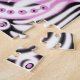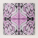 This abstract, four panel tiled, circle, erase, scratch, stretch, manipulation, street art graffiti and airbrush art style design includes the colour palette colours of pretty in pink, black and white.