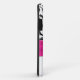 Personalized modern pink, black, and white floral damask Case-Mate Barely There™ iPhone 5 case with a hot pink PRINTED ribbon and crystal jewel brooch.