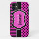 Personalized modern hot pink, black, and white polka dots with stripes Case-Mate Barely There™ iPhone 5 Case.
