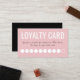 Pink loyalty punch card in a very clean design for your business in pink, white, and black. Ten visit loyalty card in pink, white, and black with your contact info on the back.