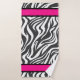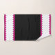 This beautiful and stylish towel set with bright pink, black and zebra print will brighten up any bathroom. The bath towel features black and white zebra animal print with hot pink and black borders. The hand towel is black with borders of white and hot pink. The washcloth is hot pink with borders of black and white. The bright and classic colours add pizzazz to any decor.