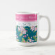 Pink Blossom on Dark Blue with Faux Lace Coffee Mug