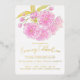Pink spring cherry blossom botanical watercolor flower painted art and gold foil wedding reception invitation. Beautiful floral art design ideal for a spring pink flower themed after the wedding evening celebration event. © Original hand painted watercolor art and design by artist and designer Sarah Trett for www.mylittleedenweddings.com