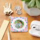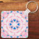 Pretty Pink and Blue 5th Wedding Anniversary Keepsake Photo Gift Key Rings. In spring and summer colors of pink, turquoise, and blue for your fifth year of marriage. A springtime and summertime modern geometric pattern round border surrounds the picture in the middle. Replace the photo on this budget friendly keyring with a picture of your own wedding celebration. The default text at the top says “Jack and Marie” in blue. At the bottom are the words “Happily Married 20xx”, in blue. Personalize this by changing the names at the top and the text and year at the bottom; and the photo. Give as a useful key fob present for newly weds, or a new mother in law or mother of the bride or groom, to your new spouse on your wedding day, or as a thank you gift for family, for coming to the service and reception. Mother, the maid of honor or your bridesmaids will love using this key chain gift to celebrate the marriage of their child, or of their family and friends. In lovely, bright and light summer colors for dopamine decor. A pretty create your own custom fourth anniversary gift for married couples.
