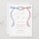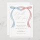 Pink blue bow Twin Birthday Invitation