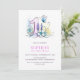 Pink Blue Butterfly Flowers 1st Birthday Party Invitation