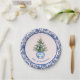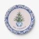 Pink & Blue Christmas Tree W/ Damask Border Paper Plate