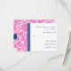 Wedding RSVP cards in elegant and contemporary bright fuchsia hot pink, dark navy blue, and white classic and chic floral vintage damask pattern. Customizable with your wedding details, available in many matching wedding products.