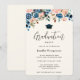 Pink & Blue Floral Border with Graduation Cap Invitation