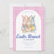 Pink Blue Floral Bunny Watercolor Gingham Easter Invitation