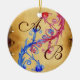 PINK BLUE FLORAL WEDDING SWIRL PARCHMENT MONOGRAM CERAMIC ORNAMENT