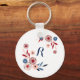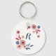 Pink, blue flowers, floral pattern, personalized keychain