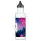 Water bottle with a beautiful abstract design in pink and blue. White stars sprinkled throughout this image of the cosmos. Trippy and cool.