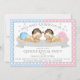 Gender reveal baby shower invitations with adorable baby boy and girl on a cute pink and blue dot background. These cute pink and blue baby gender reveal baby shower invitations are easily customized for your event by simply adding your details.